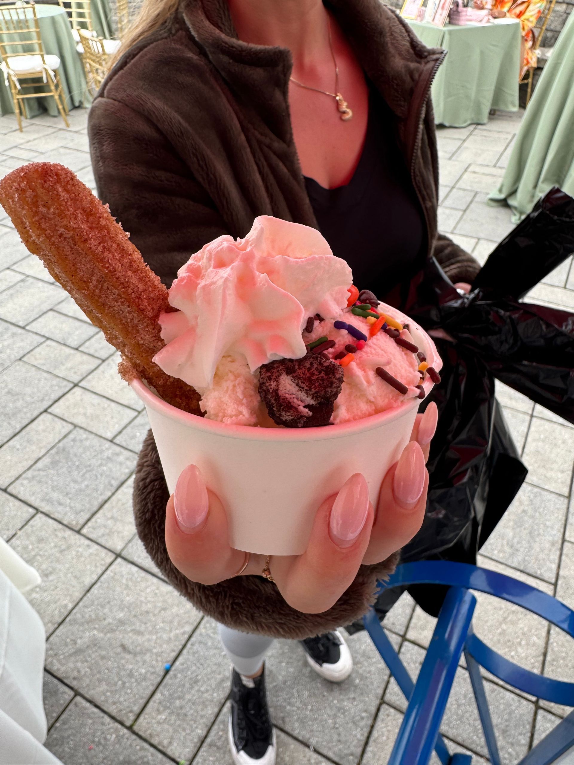 CHURRO ICE CREAM SUNDAE STATION. Ice cream and churros: a match made in heaven! The cinnamon-sugar treats pair perfectly with our hard-scooped ice cream sundae station in NJ and NYC. Choose your ice cream flavors and toppings, and let our team take care of the rest! P.S. We also offer churro machine rental Valentine’s Day.