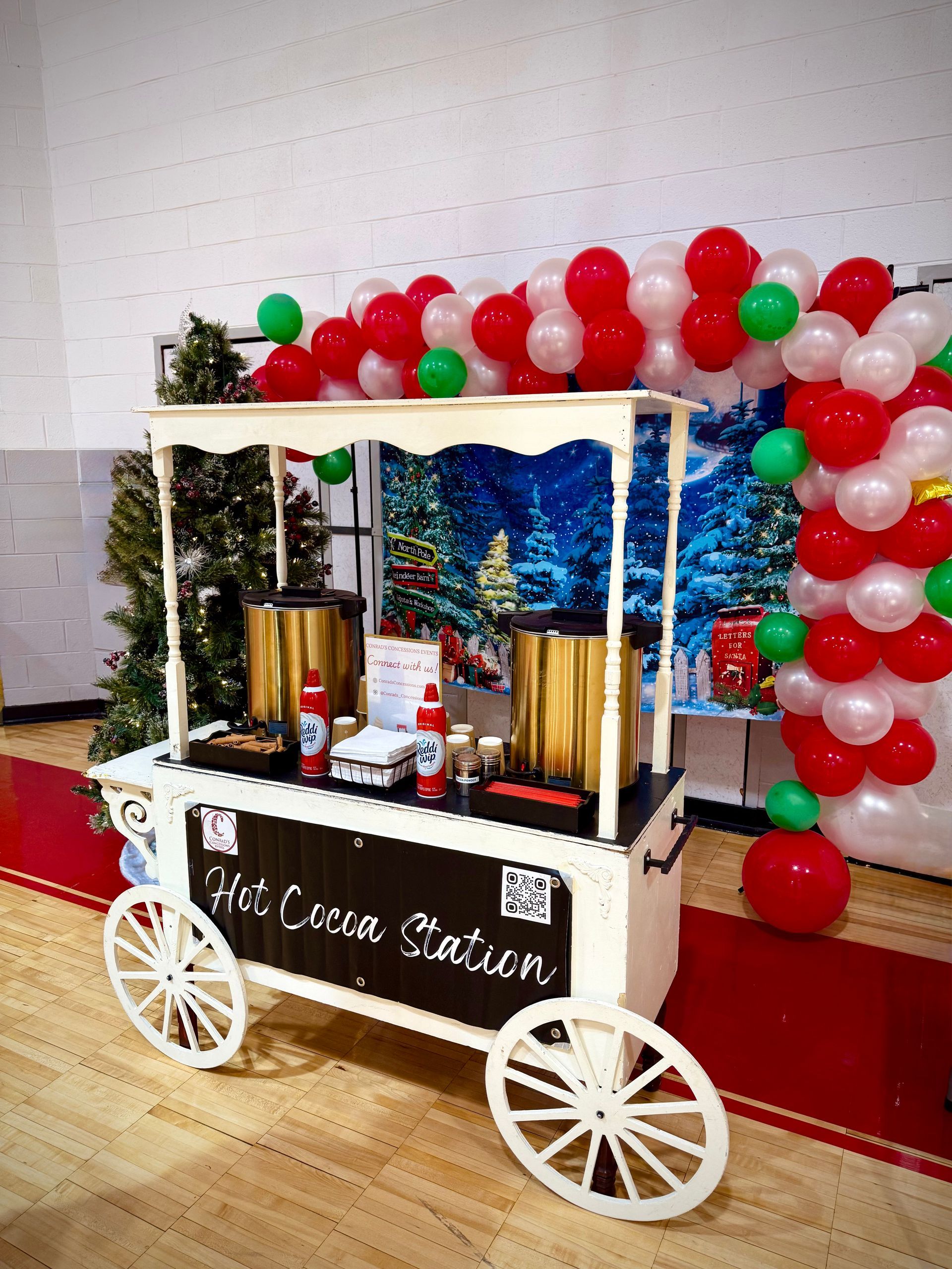 HOT CHOCOLATE CART. Why not make the chocolate drinkable? Conrad's Concessions' hot chocolate cart rental in NYC and NJ balances taste and aesthetics with a vintage-style cart complete with hot chocolate and toppings, including marshmallows, cinnamon sticks, cinnamon, whipped cream, and cocoa powder. Our team will serve your guests with a smile!